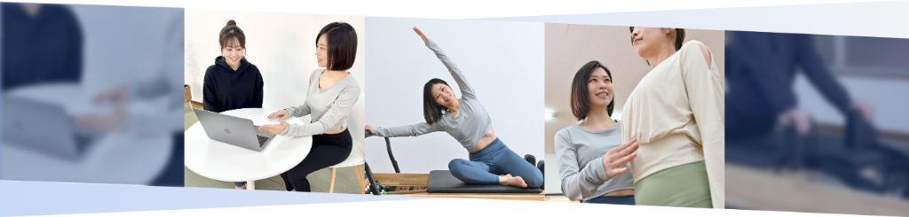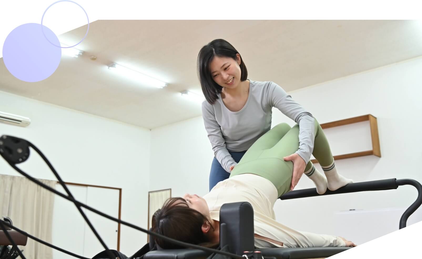 理学療法士×ピラティスインストラクターの資格を持つスタッフが、筋膜整体とピラティスを組み合わせた完全オーダーメイドのレッスンを提供。