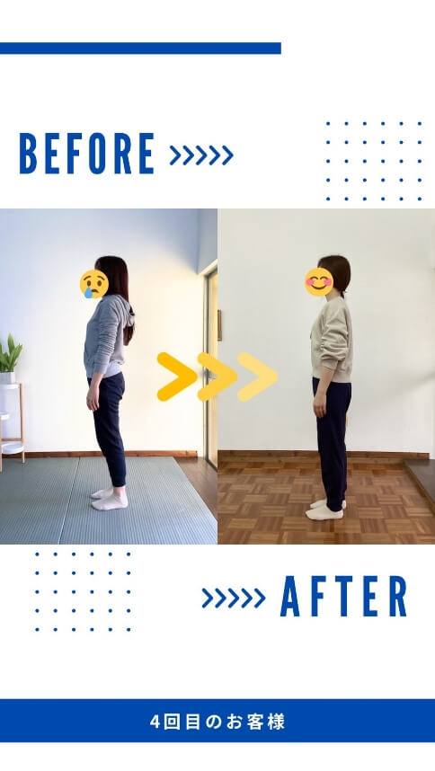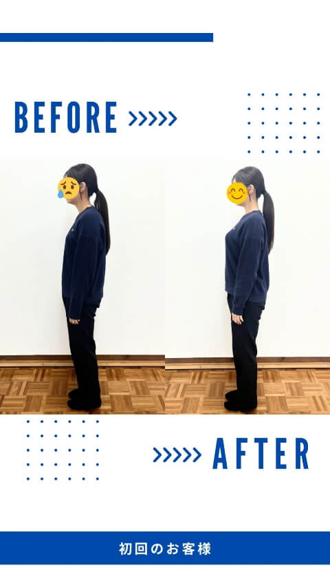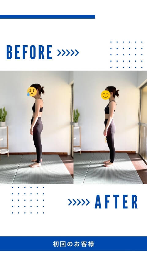 初回体験で姿勢のビフォーアフターを見せてもらい感動。